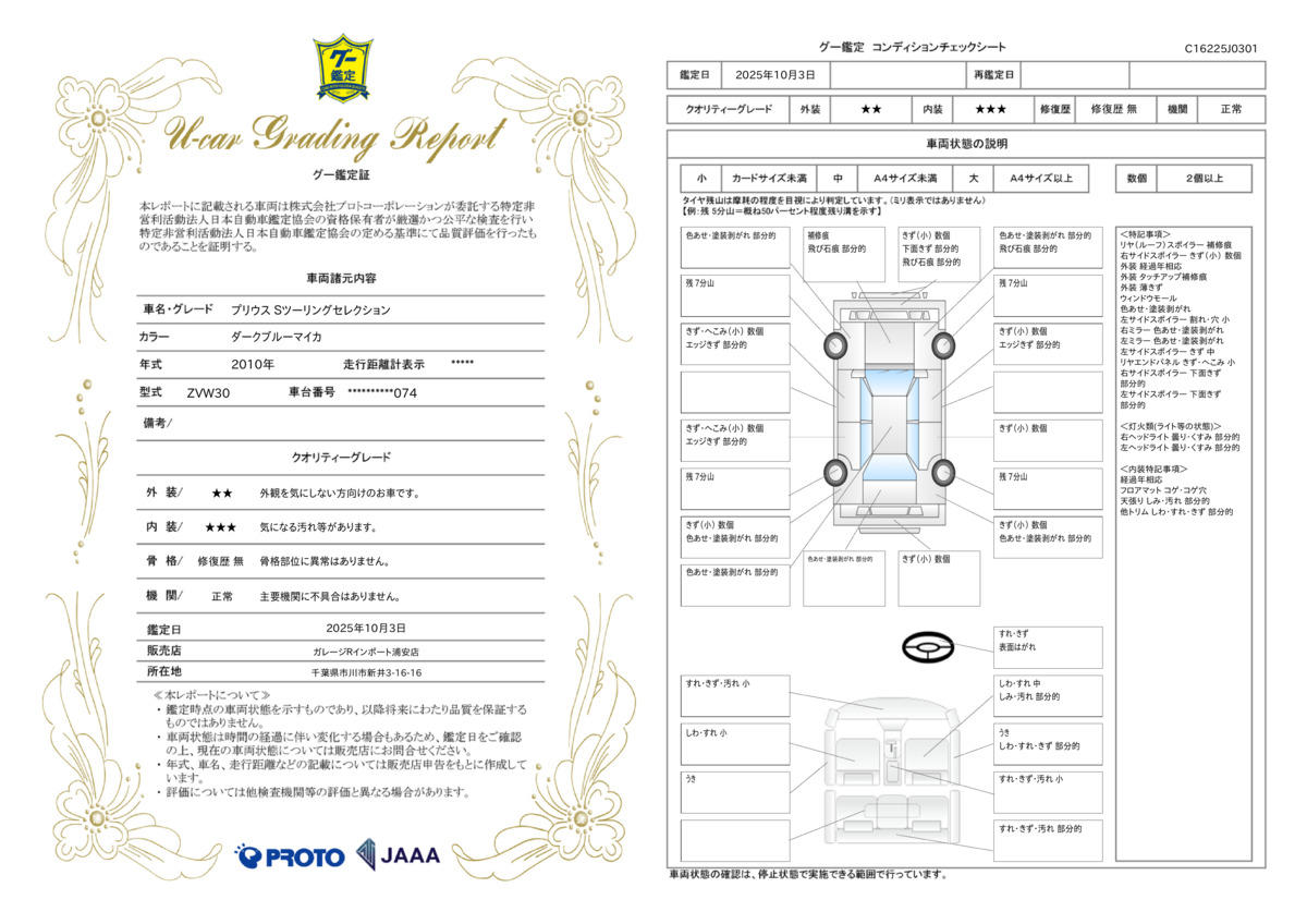 走行距離 | 9.3万km | 修復歴 | なし |