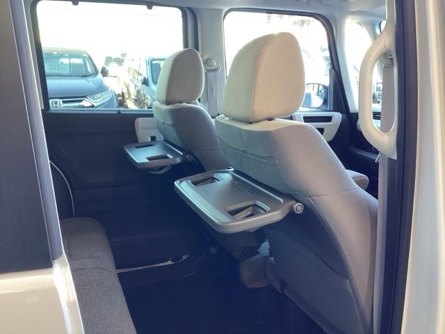 フロントシートの背面に後席用のテーブルがついています。小物が置けて、カップホルダーもあります。ドライブ中や休憩時にも便利なテーブルです。