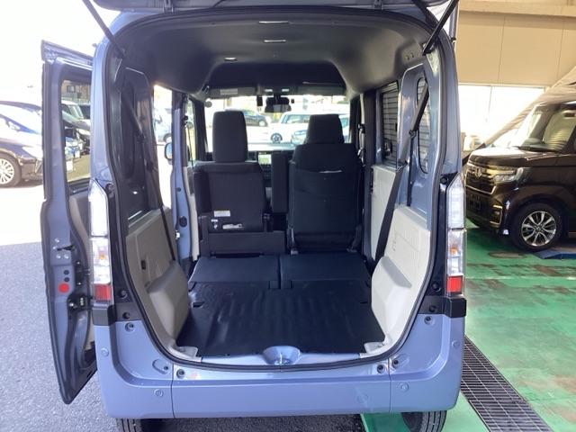 1名乗車時の助手席、荷室フラットモードです。助手席側のセンターピラーがないので、横からも長尺の荷物をのせられる開口部となってます♪