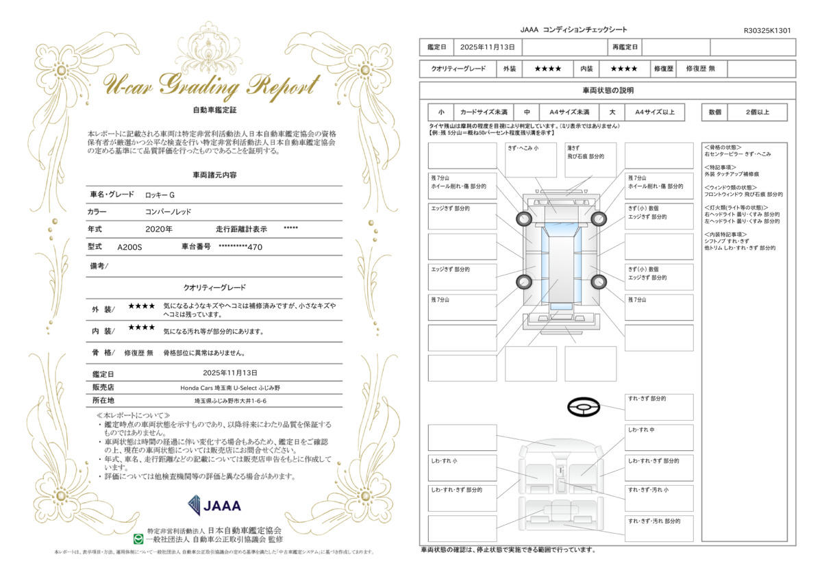| 走行距離 | 5.7万km | 修復歴 | なし |