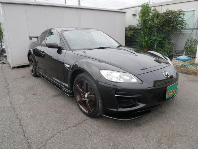 マツダ RX-8タイプE コンフォートPKG 後期型 MTモード付パドルシフト エアロ 18AW 革パワーシート シートヒーター アドバンストキー シートメモリー 電動格納ミラー HDDナビ ラジエーター交換済 1年保証付