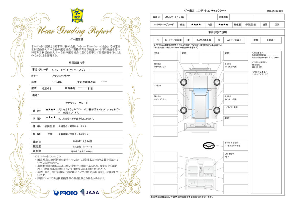 | 走行距離 | 6.2万km | 修復歴 | なし |