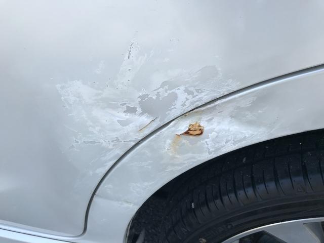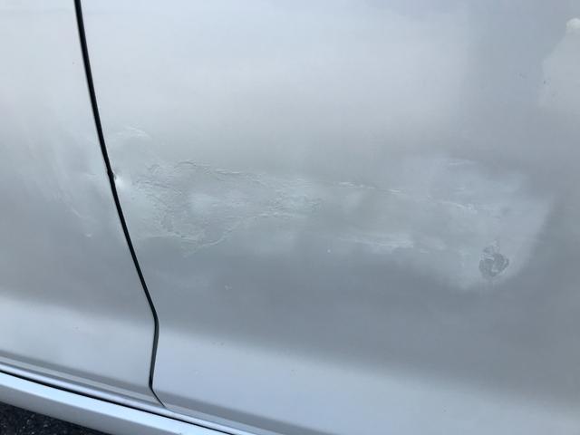 左側リアドア付近です。ヘコミを伴うキズがあります。