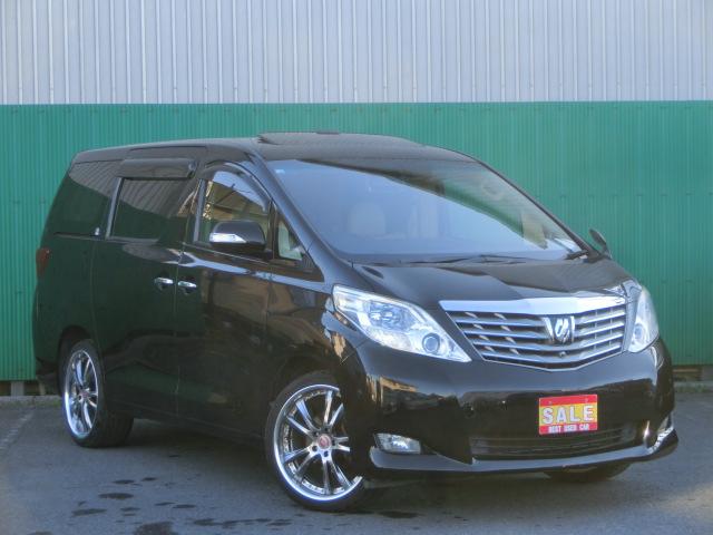 トヨタ アルファード350G Lパッケージ 両側電動スライドドア パワーバックドア 革 シートヒーター エグゼクティブシート オットマン ダブルサンルーフ 純正カーテン 社外20インチAW 社外マフラー