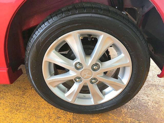 純正14インチアルミです!デザイン重視はもちろんの事、ばね下重量を軽くしてさらに燃費にも貢献しますよ!