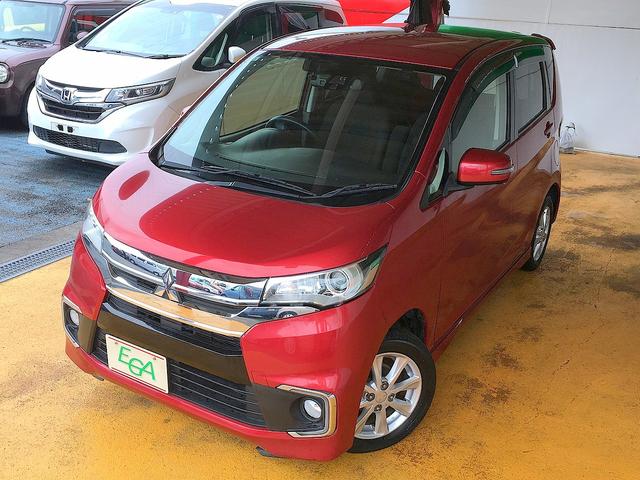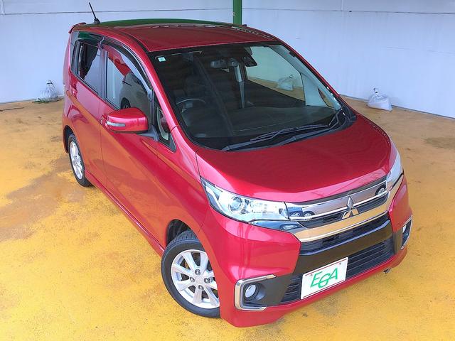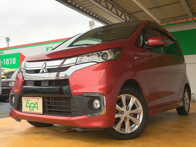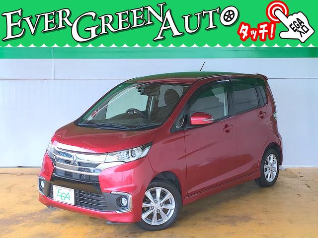 三菱 eKカスタムGセーフティパッケージ 修復歴無し 社外SDナビ フルセグTV DVD/Bluetooth再生 ステアSW アラウンドビューモニタ スマートキー 衝突軽減ブレーキ シートヒーター i-stop 純正フルエアロ&14AW