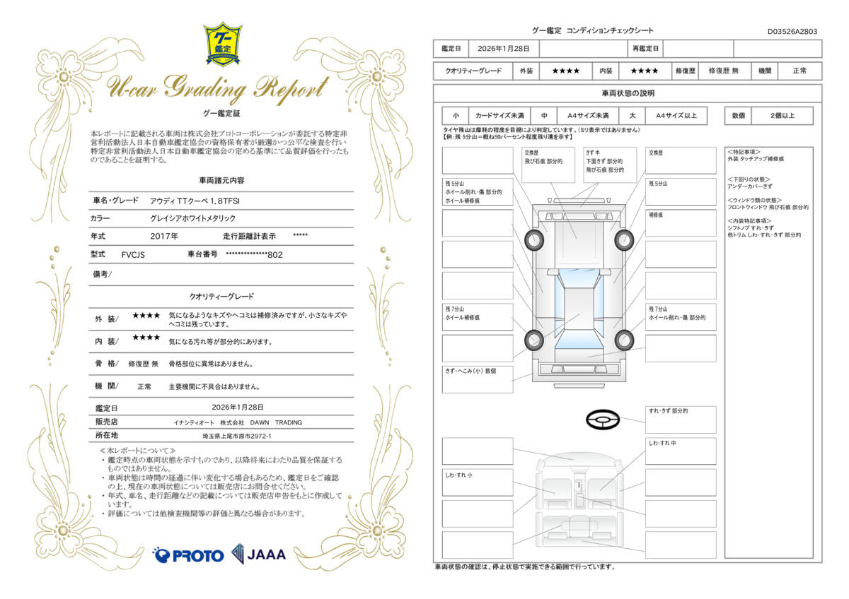 | 走行距離 | 6.1万km | 修復歴 | なし |