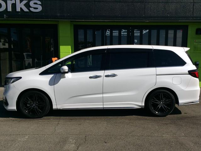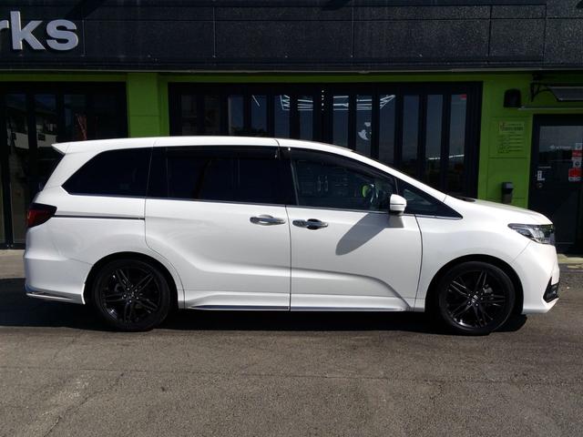 ホンダ オデッセイハイブリッドe:HEVアブソルート・EX /HDMI純正10インチナビ/フリップダウンモニター/全周囲カメラ/Pアシスト/両電動ドア/電動ゲート/ハーフレザー/シートヒーター/1500Wコンセント/ドラレコ/1オナ/記録簿/禁煙/全国1年保証