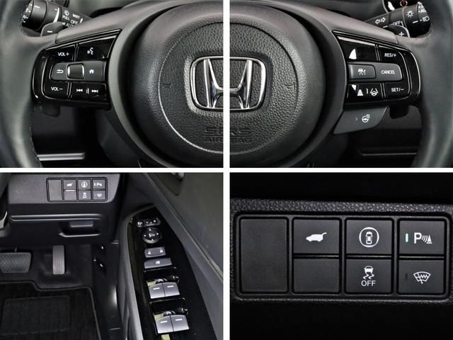 運転席回りの各種スイッチ群です。ホンダが推し進める総合先進安全装備のセンシング搭載。衝突や斜線はみだしなどの危険が予測される時、センサーが警告。ヒューマンエラーを高度先進技術が補完してくれます。