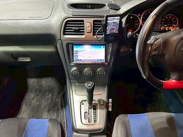 スバル インプレッサWRX 2004 Vリミテッド STIゲノムマフラー・フロントリップ リアスポイラー WORK18インチアルミ BLITZ追加メーター カムコンFi ツィーター 社外ナビ セミバケシート ステアスイッチ 革巻ステア ドラレコ ETC