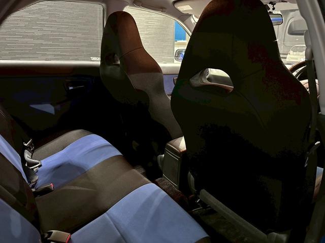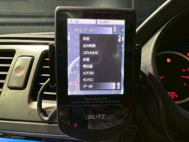 STIGonomeマフラー・フロントリップ リアスポイラー WORK18インチアルミ BLITZ追加メーター ツィーター 社外ナビ 青黒セミバケットシート ステアスイッチ 革巻ステア ドラレコ ETC