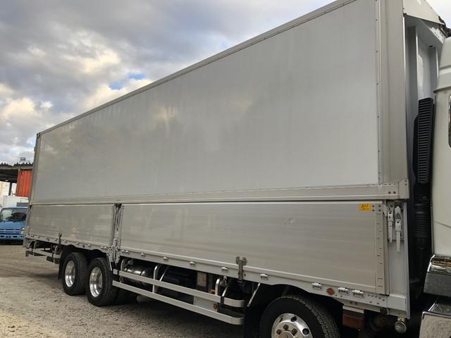 アルミウイング 4軸低床 エアサス ハイルーフ パブコ 9,660×2,410×2,650 ラッシング2段 引出しフック9対 積載13.8t アルミホイール F7 7速 マニュアル 大型ウイング メッキパーツ ETC1.0 バックカメラ