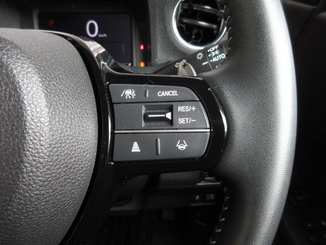 手触りの良いレザーハンドルにはホンダセンシングのコントロールスイッチが装備されており、ACCもハンドルから手を離さずに操作が出来ます。感覚で操作ができて便利で安全ですね!