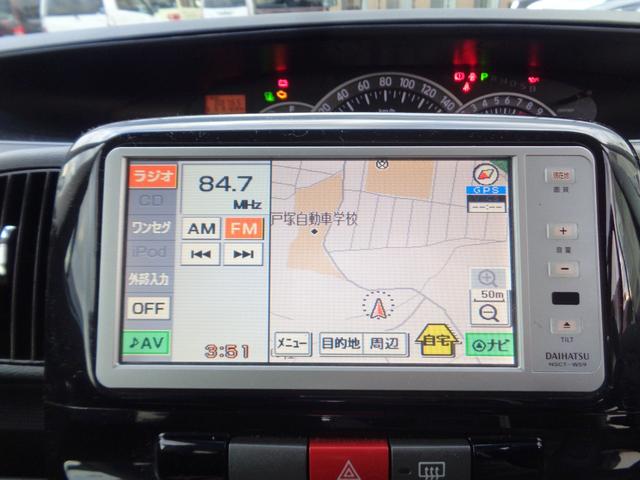 ダイハツ タントカスタムRS スマートキー 純正ナビTV CD ETC HIDライト パワースライドドア オートAC Wエアバッグ ABS 電動格納ミラー PVガラス ベンチシート 純正エアロ 15incアルミ 記録簿 取説