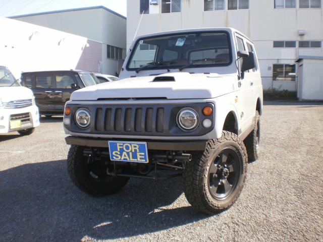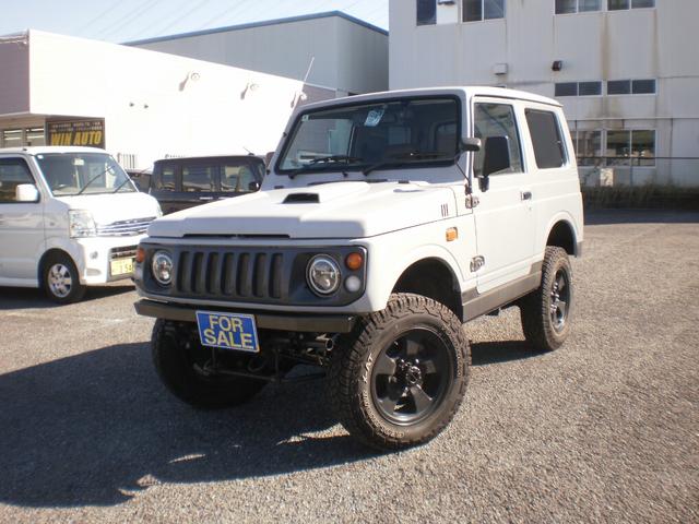 スズキ ジムニーワイルドウインド 全塗装済 オートマ車 社外前後バンパー LEDヘッドライト 2.5インチリフトアップ ブラウンレザー調シートカバー ウッドハンドル ETC
