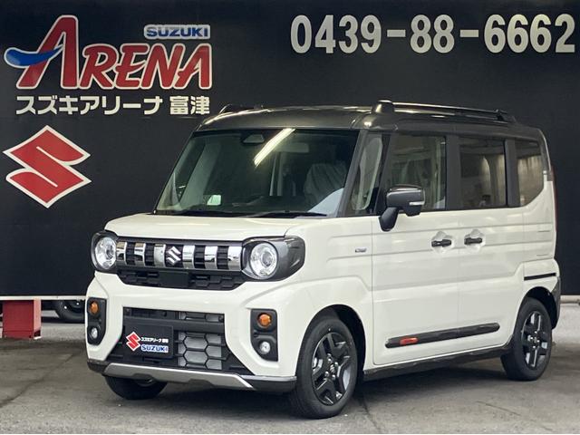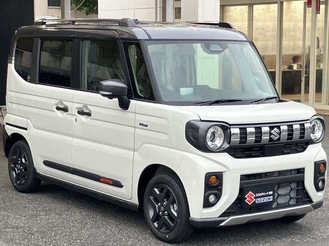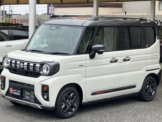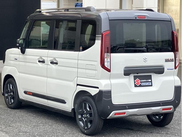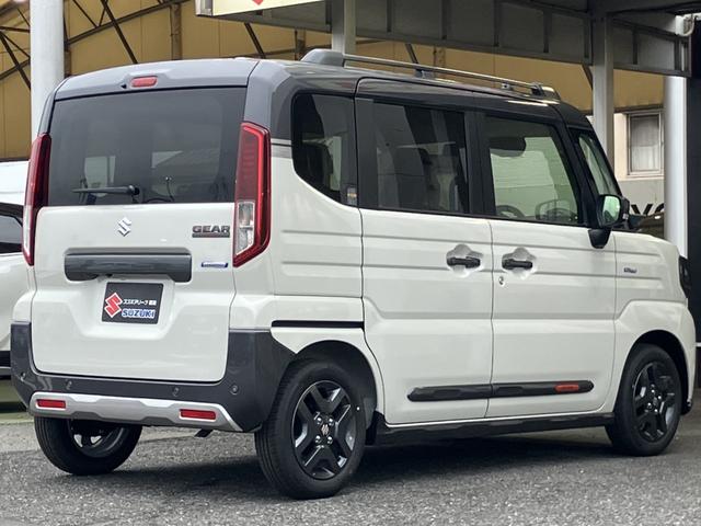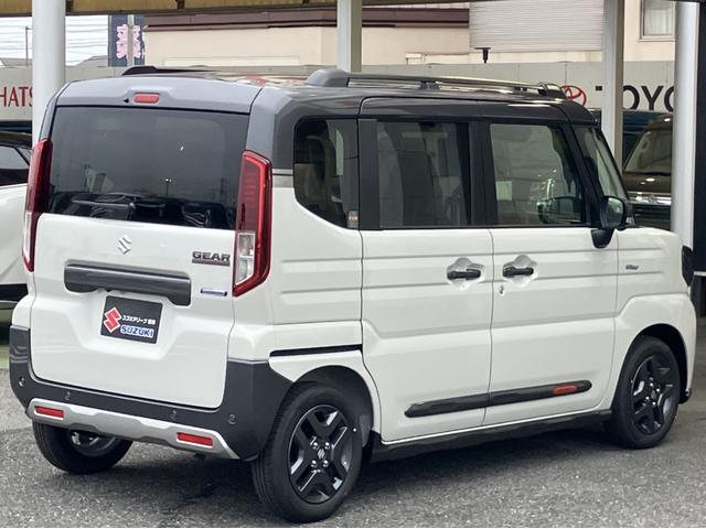 スズキ スペーシアギアハイブリッドXZ ターボ 届出済未使用車 全方位モニター付メモリーナビゲーション ツートンカラー ルーフレール ステアリングスイッチ アダクティブクルーズコントロール フルセグ 両側パワースライドドア