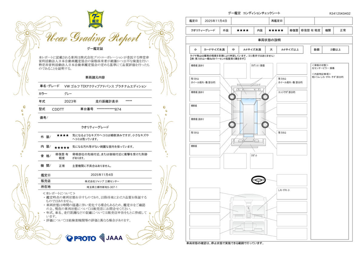 | 車台番号下3桁 | 874 | 全体のサイズ | - / - / - |