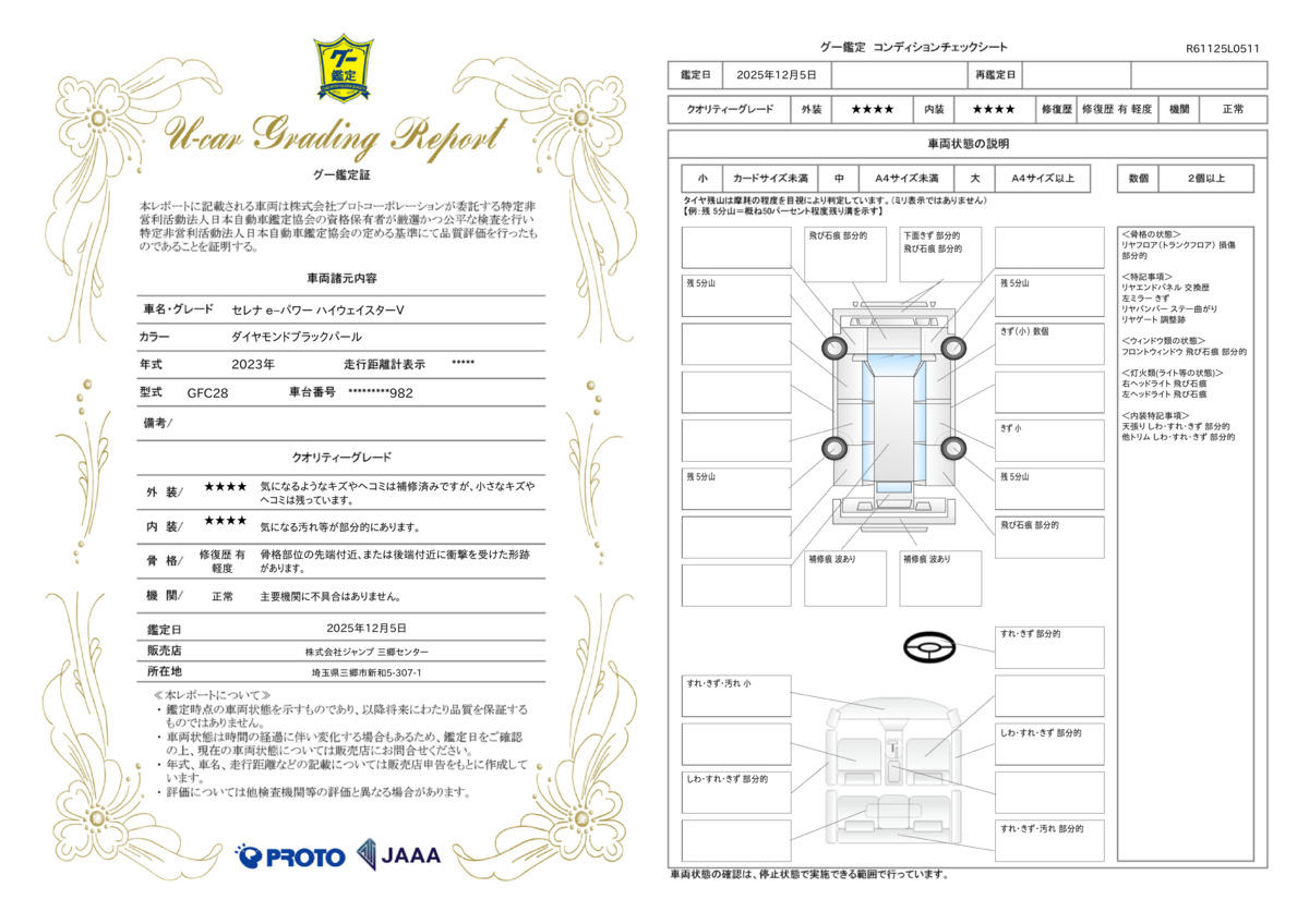 | 車台番号下3桁 | 982 | 全体のサイズ | - / - / - |