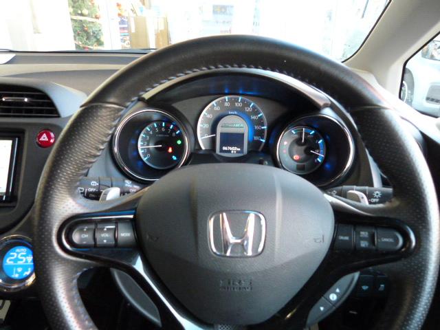 ホンダ フィットシャトルハイブリッドハイブリッド・スマートセレクションクールエディション 禁煙車 専用ブラックインテリア ブルーステッチ本革巻ステアリングホイール、セレクトレバー、コンビシート カロッツェリアナビ リアカメラ Bluetooth クルーズコントロール シートヒーター ETC