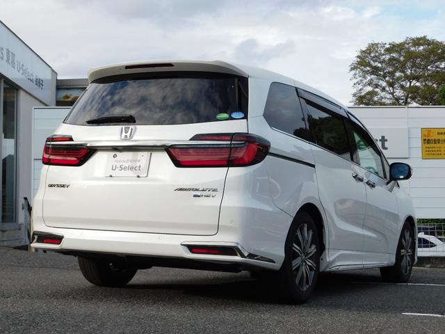 ホンダ オデッセイハイブリッドe:HEVアブソルート 全方位 純10型ナビ ナビ連ドラレコ前後 駐車アシスト ETC2.0 LED 運転席パワーシート 前後センサー 革巻ステア ドアバイザー Fマット 盗難防止 フルセグTV BT USB HDMI 禁煙