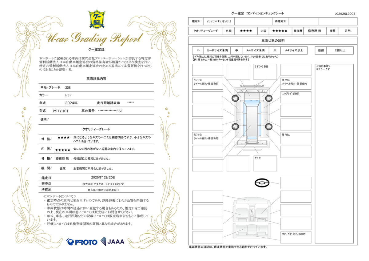 | 走行距離 | 0.2万km | 修復歴 | なし |