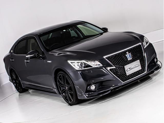 トヨタ クラウンハイブリッドアスリートG (オートサロン出展モデル)(ドラバイトグレーカスタム)(禁煙車)(黒本革シート)(新品20インチアルミ)(新品タイヤ)(フルエアロ)クリアランスソナー アダプティブハイビーム Bluetooth対応