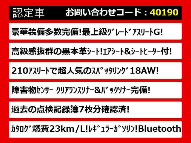 アスリートG (黒本革シート)(オプション18インチアルミ)(クリアランスソナー)アダプティブハイビーム 点検記録簿7枚 Bluetooth対応 レギュラーガソリン仕様 エアシート シートメモリー 点検記録簿7枚