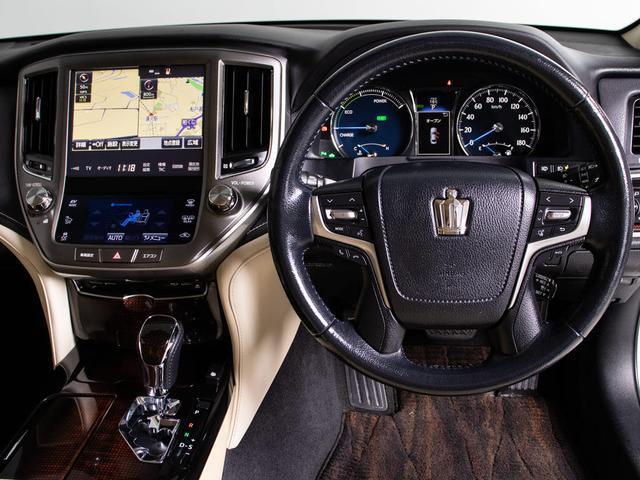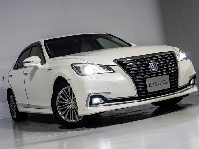 トヨタ クラウンハイブリッドロイヤルサルーンG 後期型(禁煙車)(オプション17インチアルミ)(衝突軽減ブレーキ)(踏み間違い防止機能)レーダークルーズ イージークローザー 後席VIP シートメモリー アダプティブハイビーム Bluetooth対応