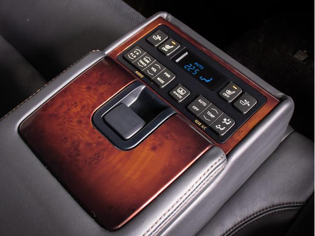 後席もVIP装備!後席センターコンソールの画像です!こちらのお車には、後席にもパワーシートが装備されています!更にオーディオなども後席から操作出来るなど豪華!ゲストに喜んで頂ける装備ですね!