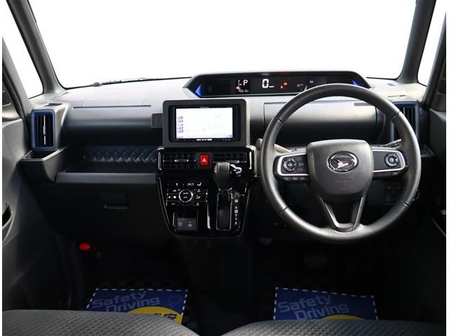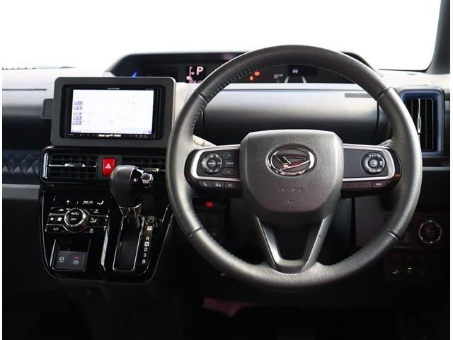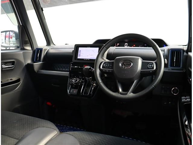 ダイハツ タントカスタムRS 社外HDDナビフルセグパノラマモニタースマートキー専用15インチアルミLEDヘッドライト&フォグメッキサイドガーニッシュステアリモコンレーダークルコンスーパースライドシートハーフレザー