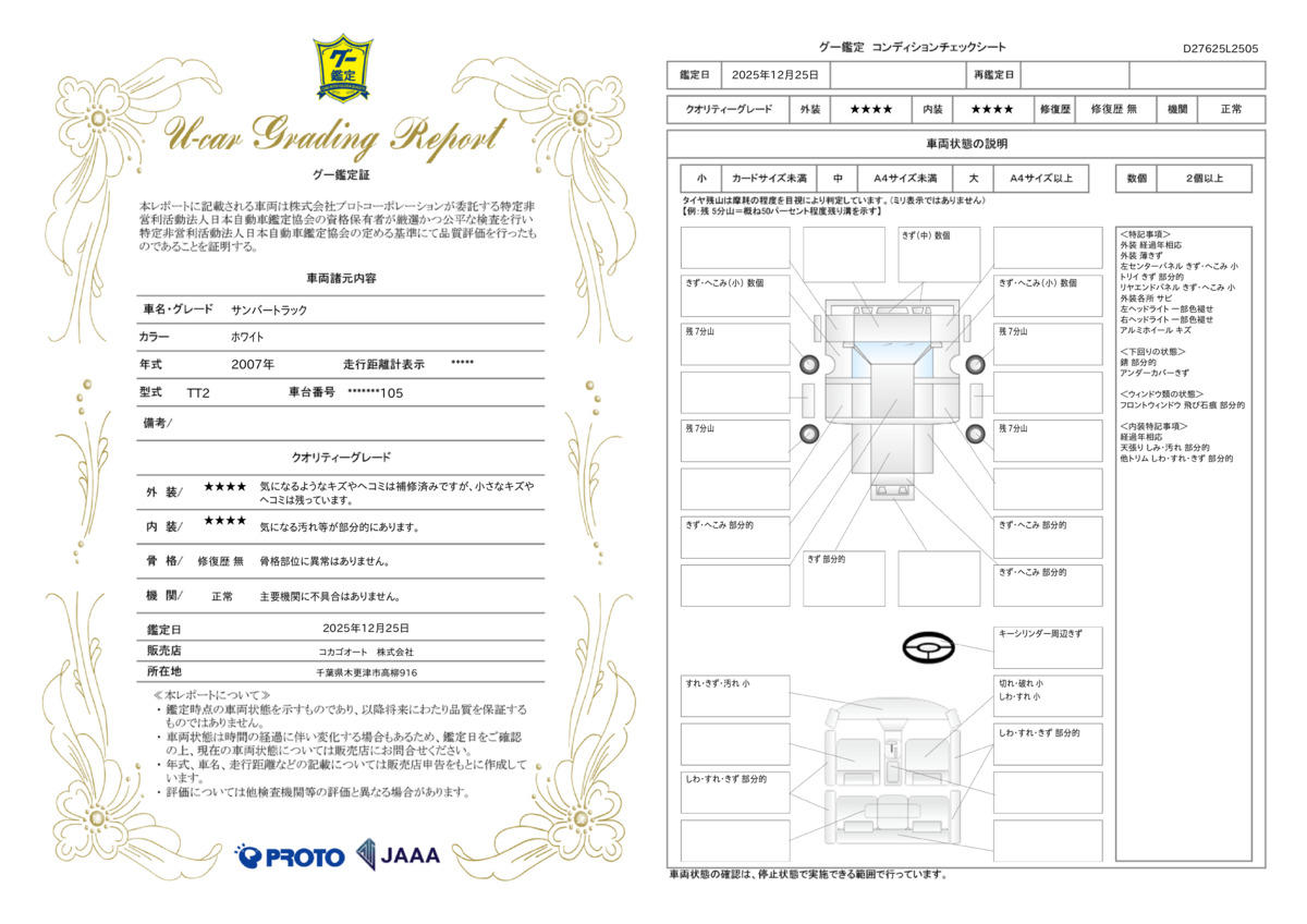 | 走行距離 | 6.8万km | 修復歴 | なし |