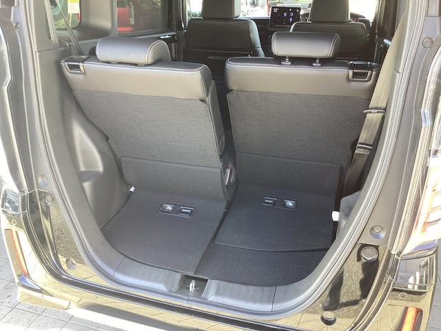 座面を跳ね上げれば、後席が背の高い空間に。駐車場などで後ろが狭く、テールゲートが開けられない時に、横から積みやすい「もうひとつの荷室」になるなど、アイデア次第で使い方が広がります。