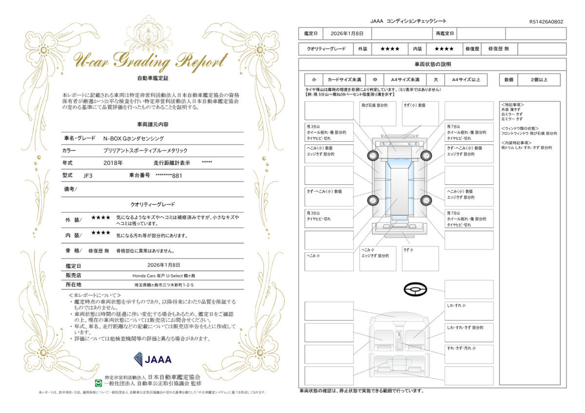 | 走行距離 | 2.6万km | 修復歴 | なし |