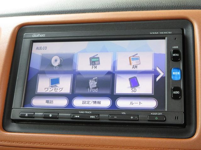 ナビゲーションはギャザズメモリーナビ(VXM-164CSi)を装着しております。AM、FM、CD、Bluetooth、ワンセグTVがご使用いただけます。初めて訪れた場所でも安心ですね!