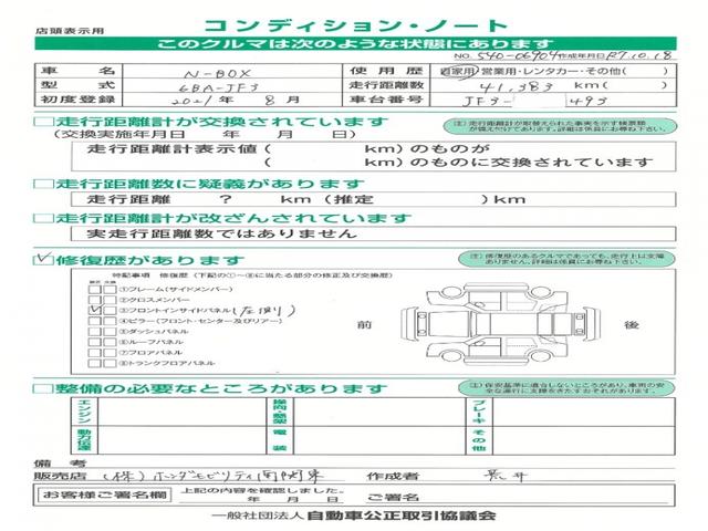 こちらのN-BOXは左側フロントインサイドパネルを修正していますが、綺麗に直しておりますので走行に支障はございません。安心してお乗りいただけます。