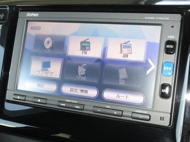 ナビゲーションはギャザズメモリーナビ(VXM-174CSi)を装着しております。AM、FM、CD、Bluetooth、ワンセグTVがご使用いただけます。初めて訪れた場所でも安心ですね!