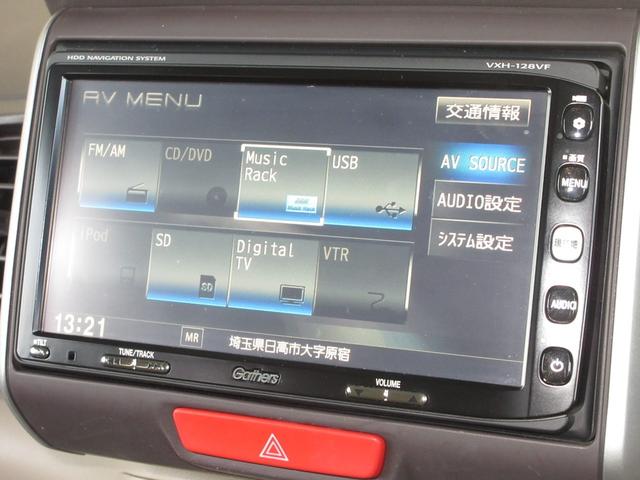 ナビゲーションはギャザズHDDナビ(VXH-128VF)を装着しております。AM、FM、CD、DVD再生、音楽録音再生、TVがご使用いただけます。初めて訪れた場所でも安心ですね!