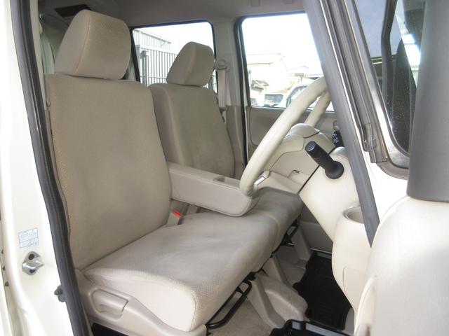 大柄な人でも不満の無いようの設計したフロントベンチシート。インパネシフトで左右の移動が楽々。停車時に危険な道路側に降りずに済むので安心ですね。