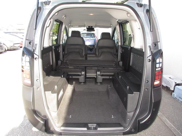 後席の座面を前方に跳ね上げ、背もたれを前倒しするダブルフォールダウン機構により、厚みのある快適なシートクッション。大人3人が座れる大型サイズでソファみたいにリラックス。