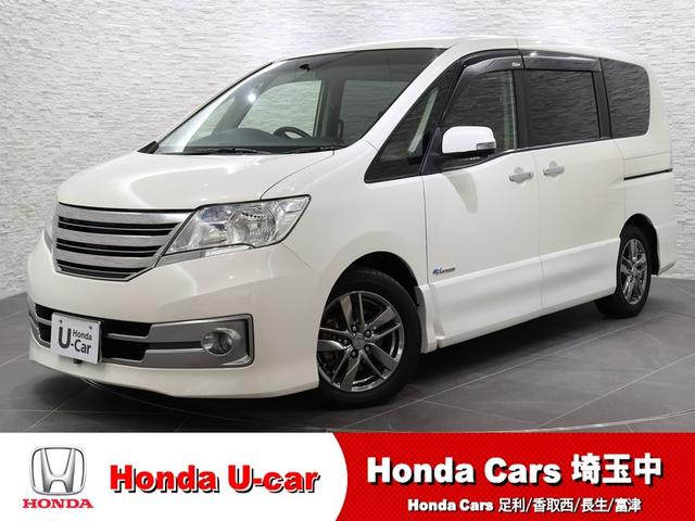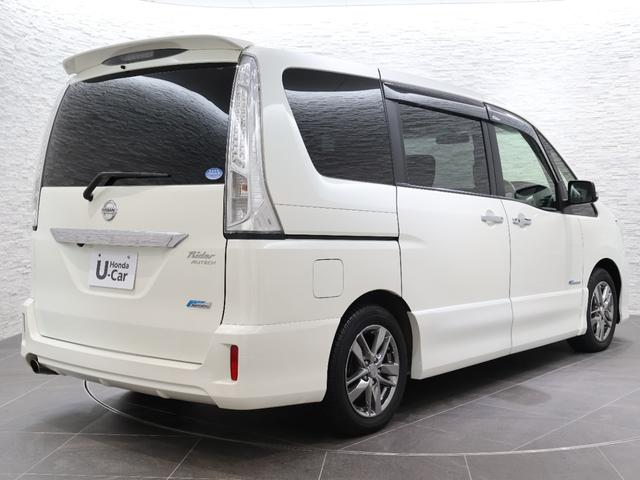日産 セレナライダーS-ハイブリッド 純正ナビ フロント/サイド/バックカメラ 両側パワースライドドア フリップダウン ETC HIDライト フォグ Sキー オートクルーズ 地デジ 盗難防止装置 3列シート Bカメラ キーレスエントリー