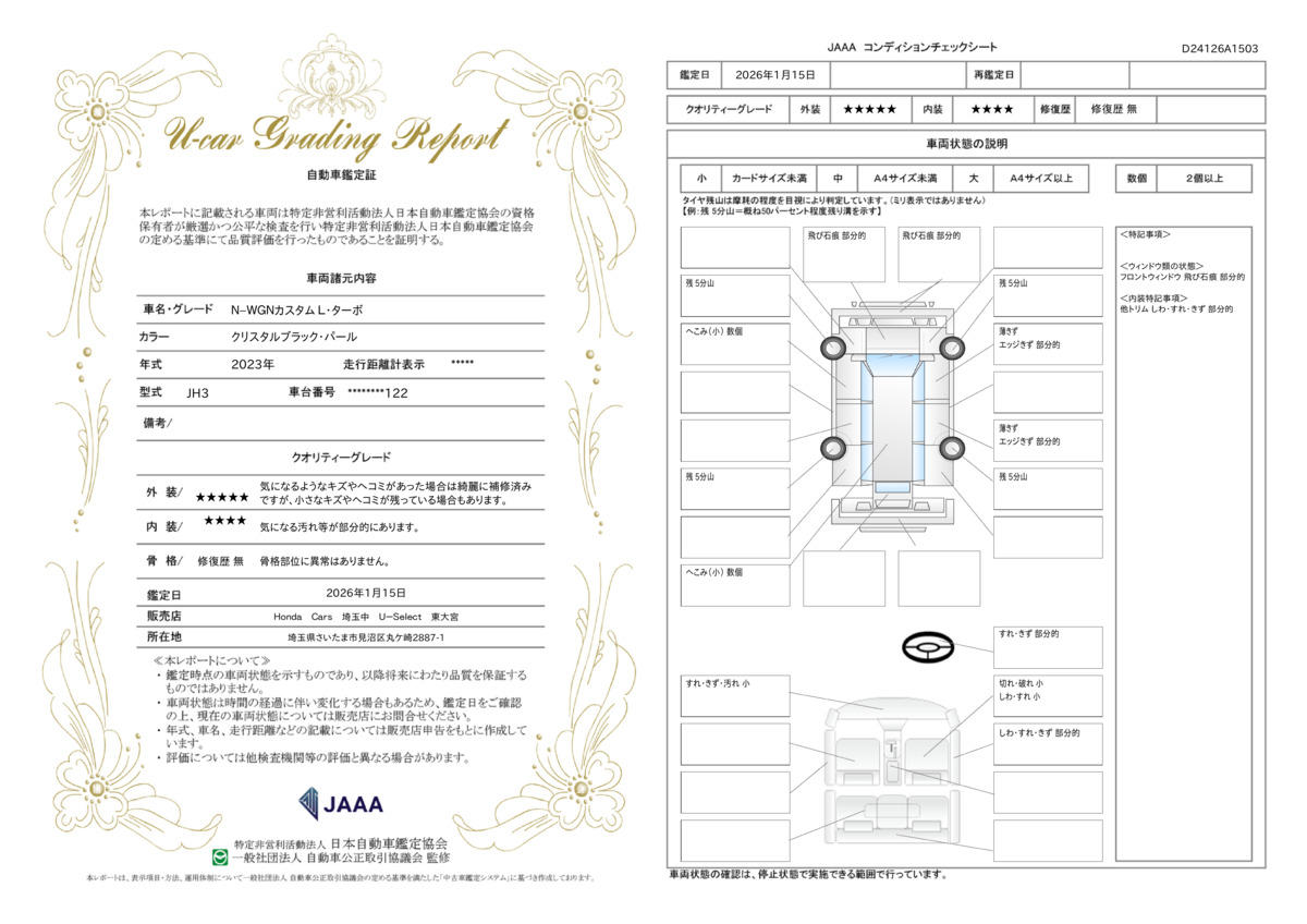 第三者機関が車の状態を厳しくチェックしております!ご不明な点がございましたあら何でもご相談下さい!