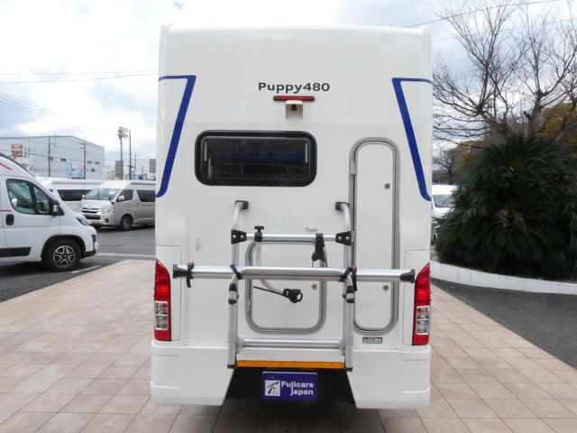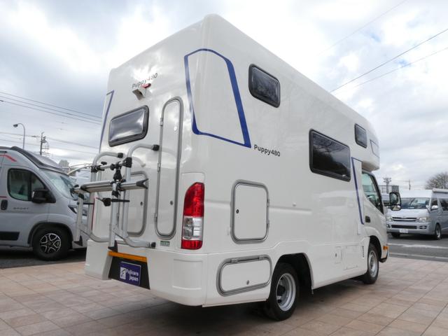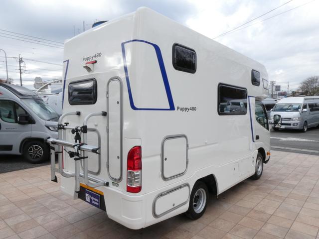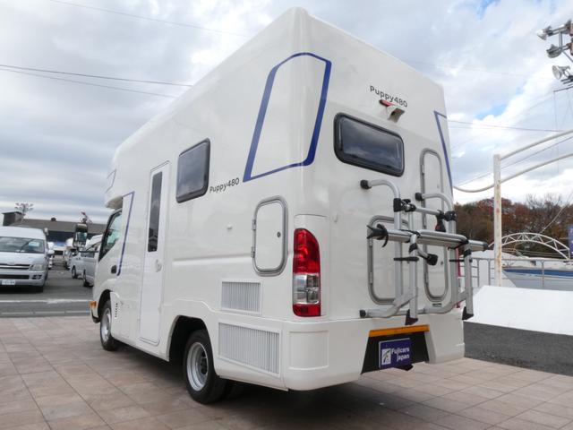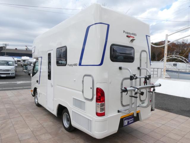 キャンパー厚木 パピー480 キャンピングカー 8ナンバー 家庭用エアコン ソーラーパネル4枚 鉛バッテリー3個 走行充電 外部充電 インバーター1500W FFヒーター マックスファン シンク テレビ 冷蔵庫 電子レンジ トイレ