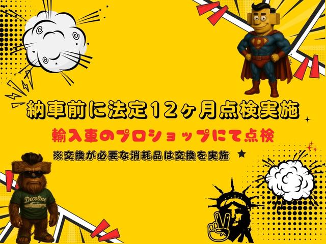 | 法定整備について | 納車前に法定12ヶ月点検を実施します。不具合箇所は勿論のこと、交換必要な消耗品関係も交換してからの納車になります。正規ディーラー様もしくは、輸入車に特化したプロショップにてしっかり整備を行います。 |