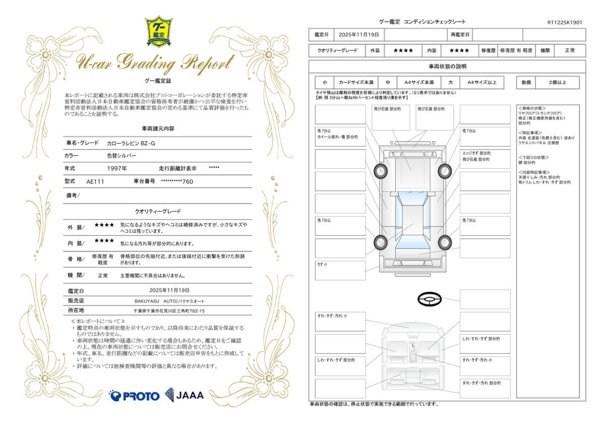 | 記録簿 | ー | 輸入認定中古車 | ー |