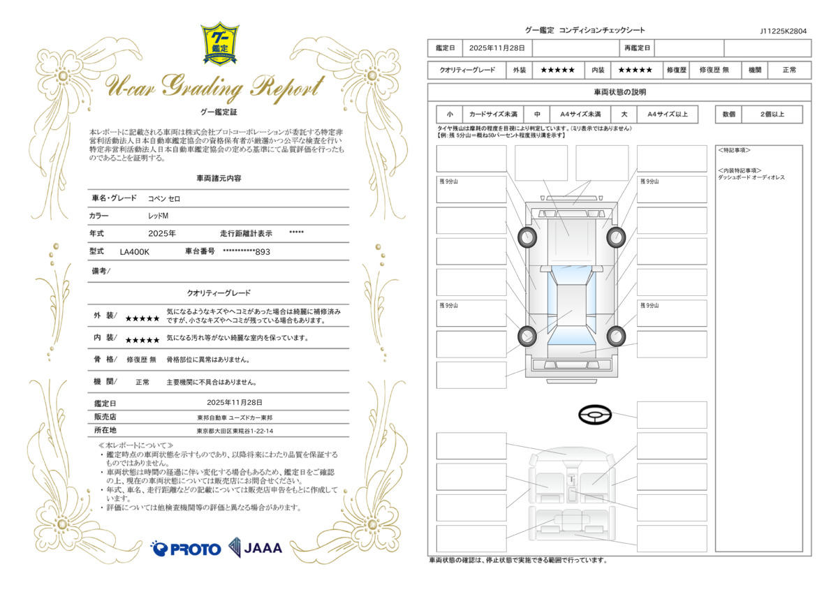 | 車台番号下3桁 | 893 | 全体のサイズ | - / - / - |