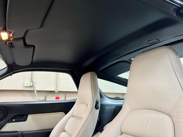 PORSCHEロゴ入り本革ステアはスレやステッチのほつれも無く綺麗!年代によって異なるステアリングデザインは当時の雰囲気を感じる◎エアコン装備で夏場もGTカーとして快適に乗れる!天井もレザー張で上質◎