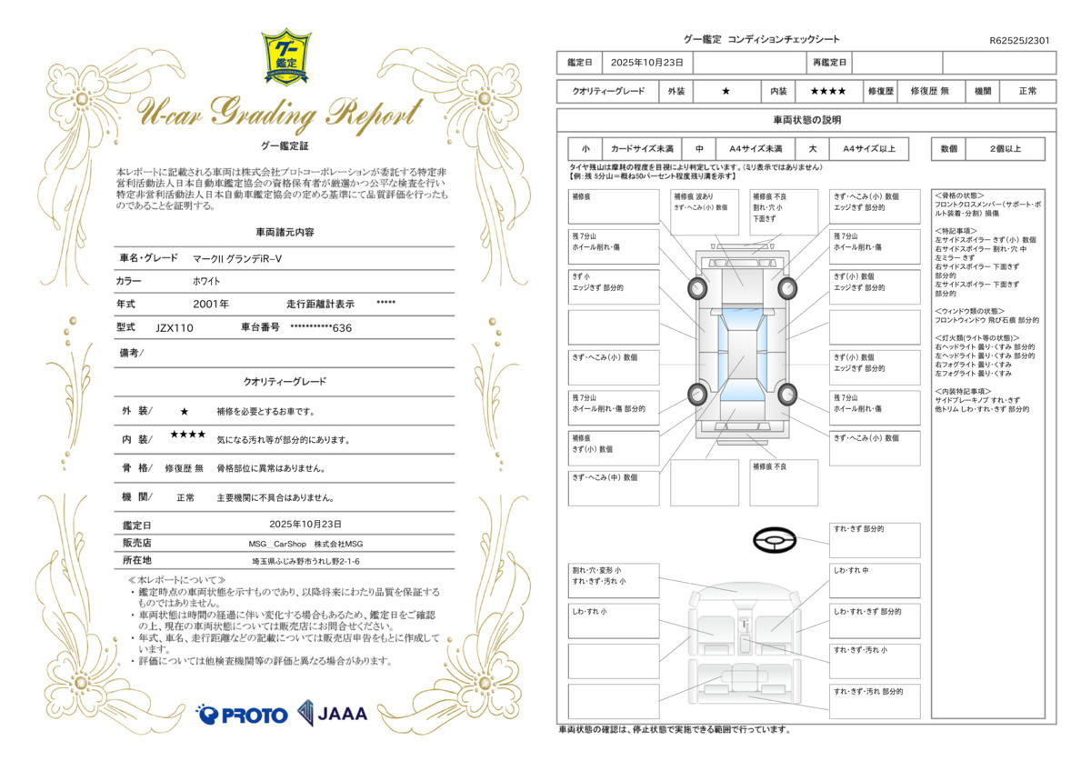 | 走行距離 | 19.1万km | 修復歴 | なし |