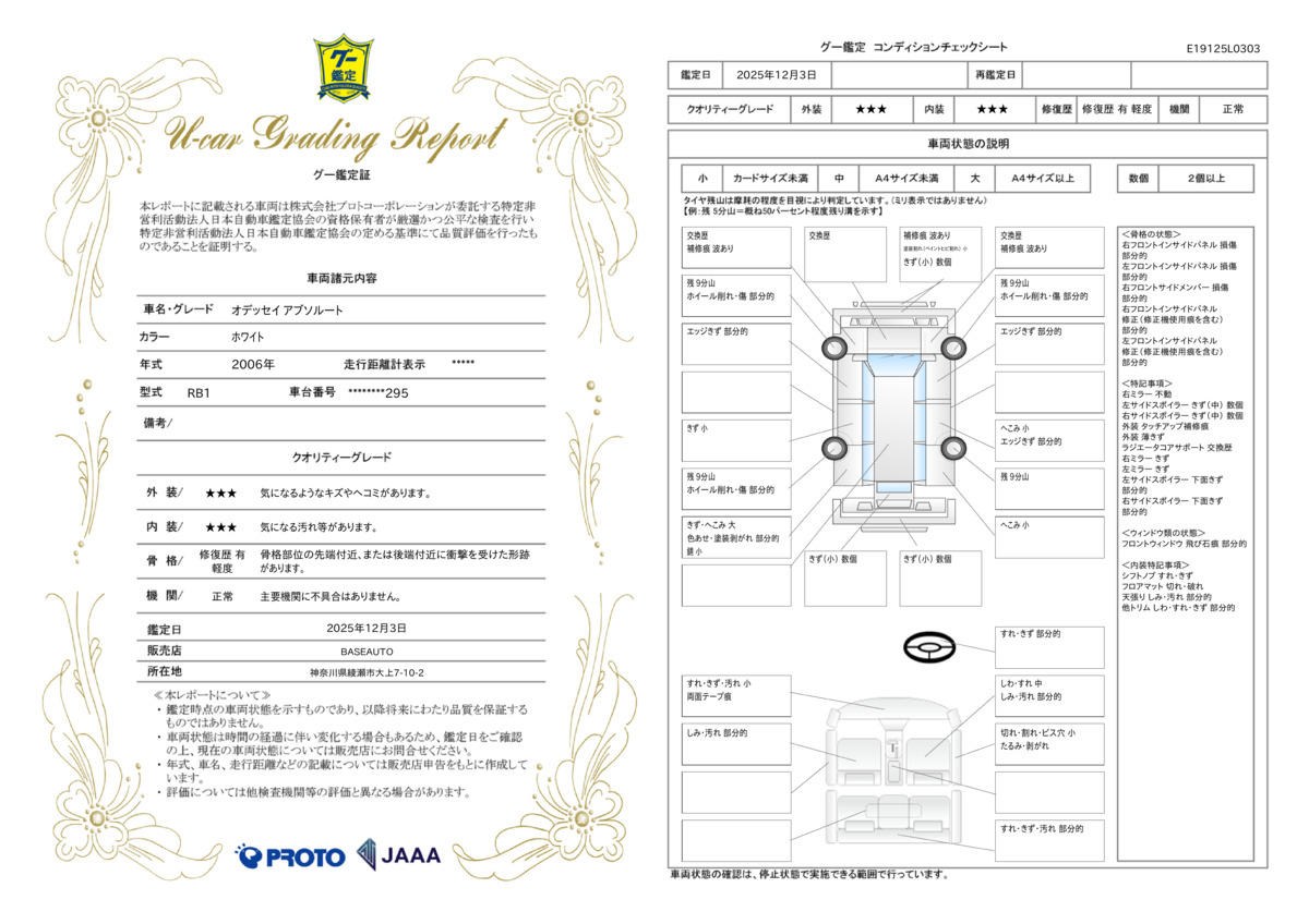 | 記録簿 | ー | 輸入認定中古車 | ー |