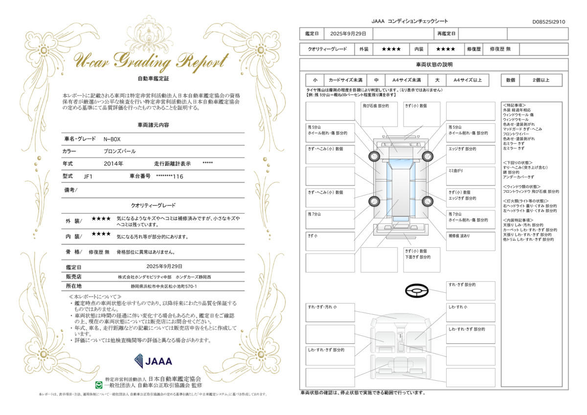 | 走行距離 | 8.5万km | 修復歴 | なし |