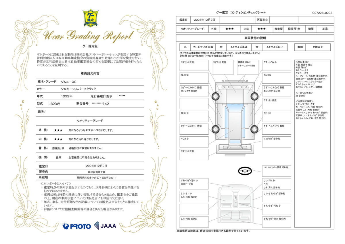 | 走行距離 | 9.4万km | 修復歴 | なし |